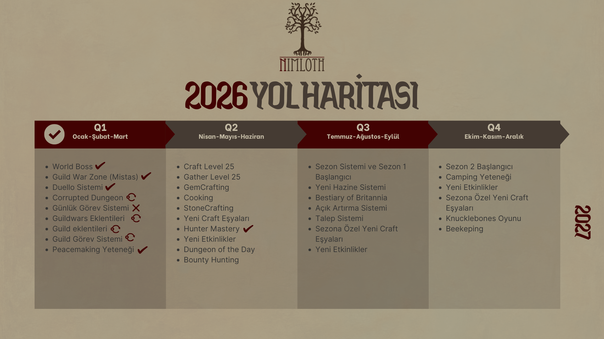 • Q2 sürecinde, özellikle üretim ve ekonomi tarafında önemli geliştirmeler planlıyoruz. Bu kapsamda Craft ve Gather sistemleri üzerinde yapılacak genişleme ile hem içerik hem de çeşitlilik anlamında önemli yenilikler sunmayı hedefliyoruz.