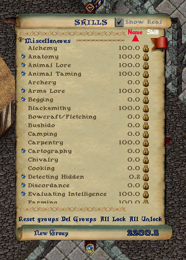 • Skills menüsüne Name ve Skill seviyesine göre sortlama özelliği eklendi