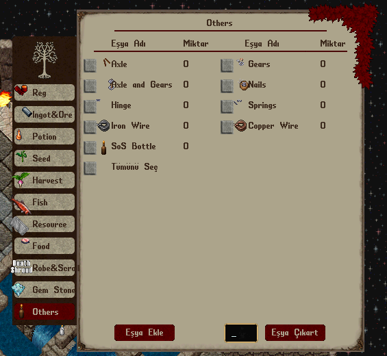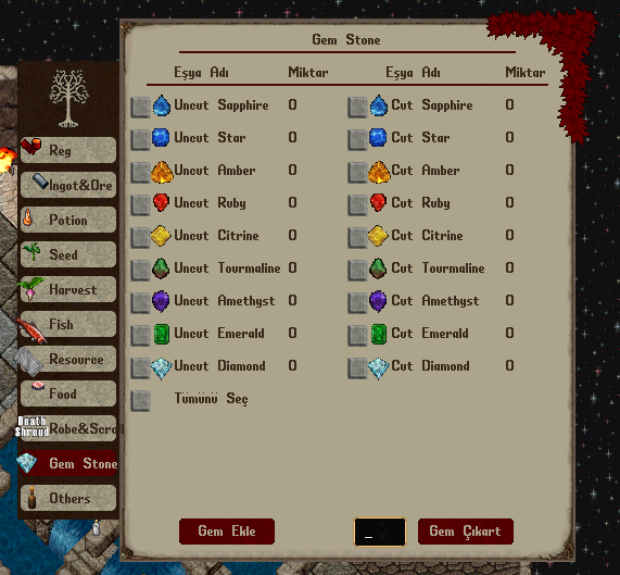 • Item Storage a Gem Stones ve Others sekmesi eklendi