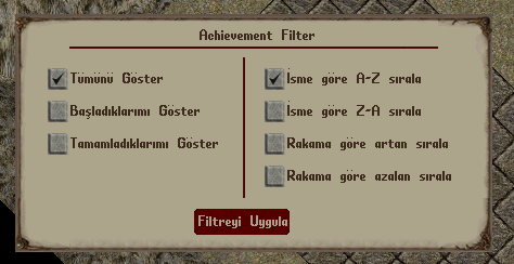 • Tamamladıklarımı Göster : Tamamen bitirdiğiniz achievementları listeler.