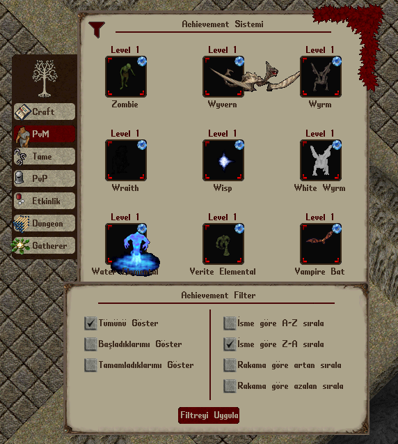 PvP Achievement'ları tamamen oyuncu öldürme odaklı bir ilerleme sistemidir.