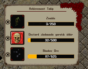 Nimloth dünyasında ilerleyişinizi adım adım takip edebileceğiniz, başarılarınızı kayıt altına alabileceğiniz ve çeşitli ödüller kazanabileceğiniz kapsamlı bir başarı sistemi sizleri beklemekte.