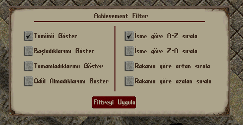 • Ödül Almadıklarımı Göster : Tamamladığınız fakat ödülünü almadığınız achievementları filtreler.