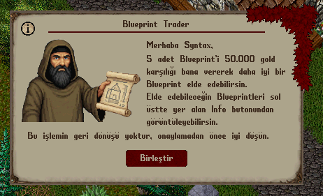Trader, bu işlem için sizden 5 adet Blueprint ve 50.000 altın talep edecektir.