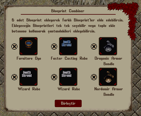 6 adet blueprint eklendikten sonra "Birleştir" butonuna tıklayarak yeni bir Blueprint elde edebilirsiniz.