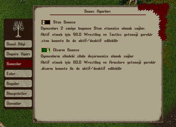 Eğer bu yeteneklere sahipseniz oyun içerisinde .stun yazarak ya da Profile menüsünde yer alan bonuslar sekmesinden bonusu aktif-deaktif edebilirsiniz.