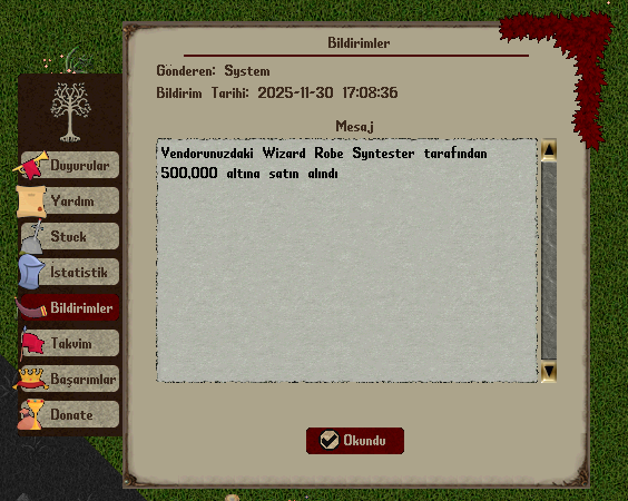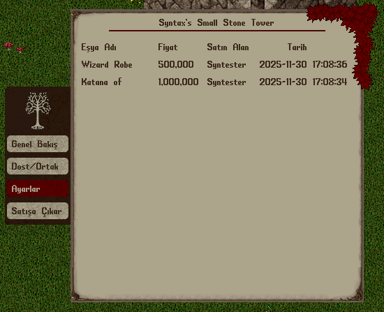 Premium oyuncular, vendor üzerinden yapılmış son 10 satış işlemini ev menüsünden toplu şekilde görüntüleyebilirler.