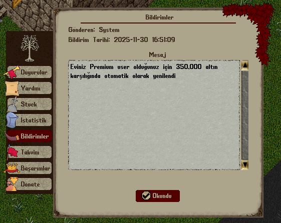 Premium oyuncular, Profile menüsü üzerinden oyun içerisinde gösterilen çeşitli duyuru mesajlarını istedikleri şekilde aktif veya pasif hale getirebilirler.