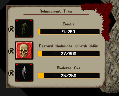Takip edilen başarımlar için ekranda bir takip paneli görünür.