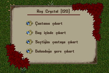 Reg kristaline tek tıklandığında, bir dialog ekranı açılır ve aşağıdaki seçenekler sunulur: