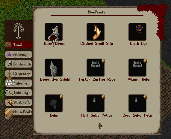 Normal koşullarda, üretilen her eşya oyuncu tarafından Craft Quest Deed üzerine manuel olarak eklenmelidir.
