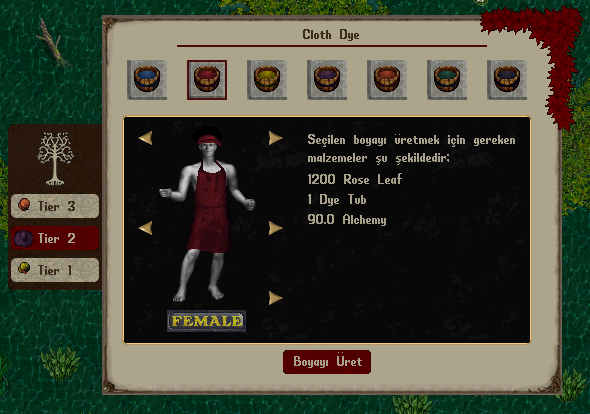 Tier 2 boyalar, daha derin ve doygun renklerden oluşur, üretimi için 1200 yaprak ve 90.0 Alchemy yeteneği gerektirir.