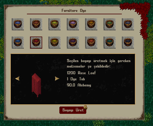 Bu eşyayı satın aldıktan sonra çift tıklayarak üretim menüsünü açabilirler.
