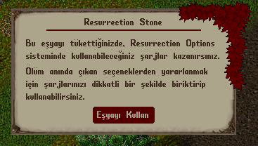 Resurrection Stone, undead yaratıklardan düşen ve Canlanma Seçenekleri sisteminde kullanılan özel bir eşyadır. Bu eşyayı kullanabilmek için önce çantanızdaki taşı "tüketmeniz" gerekir: