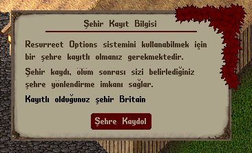 Bu seçeneği kullanarak daha önce kayıt yaptırdığınız şehre ışınlanabilir ve orada yeniden doğabilirsiniz.
