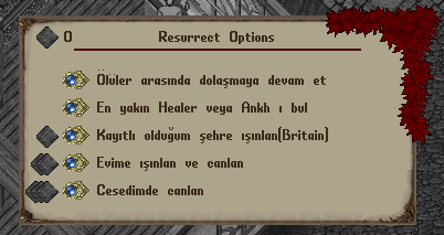 Oyunda öldüğünüzde karakterinizin üzerinde bir Ankh simgesi belirir. Bu simgeye tıkladığınızda karşınıza bir canlanma seçenekleri menüsü çıkar. Bu menüde toplam 5 farklı seçenek sunulur: