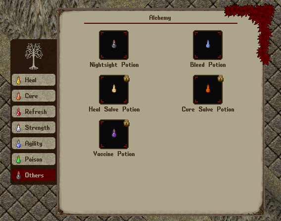 Heal Salve Potion Üretimi için 10 Ginseng, 1 Empty Bottle, 1 Full Salve Jar ve 98.1 Alchemy yeteneği gereklidir.