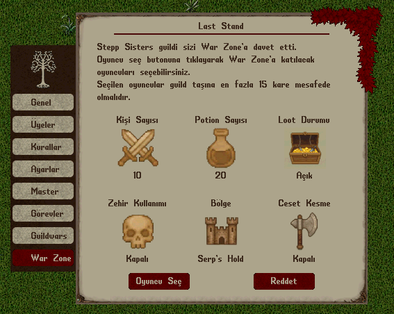Bu seçim yapıldığında, karşı guilde bir bildirim gönderilir.
