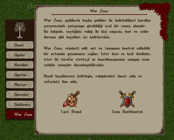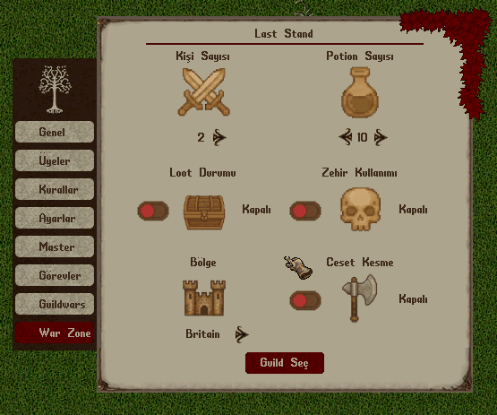 Guild taşına tıkladığınızda, en altta yer alan War Zone sekmesini görebilirsiniz. Bu sekmeye tıkladığınızda karşınıza iki farklı oyun modu çıkar: