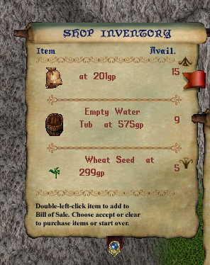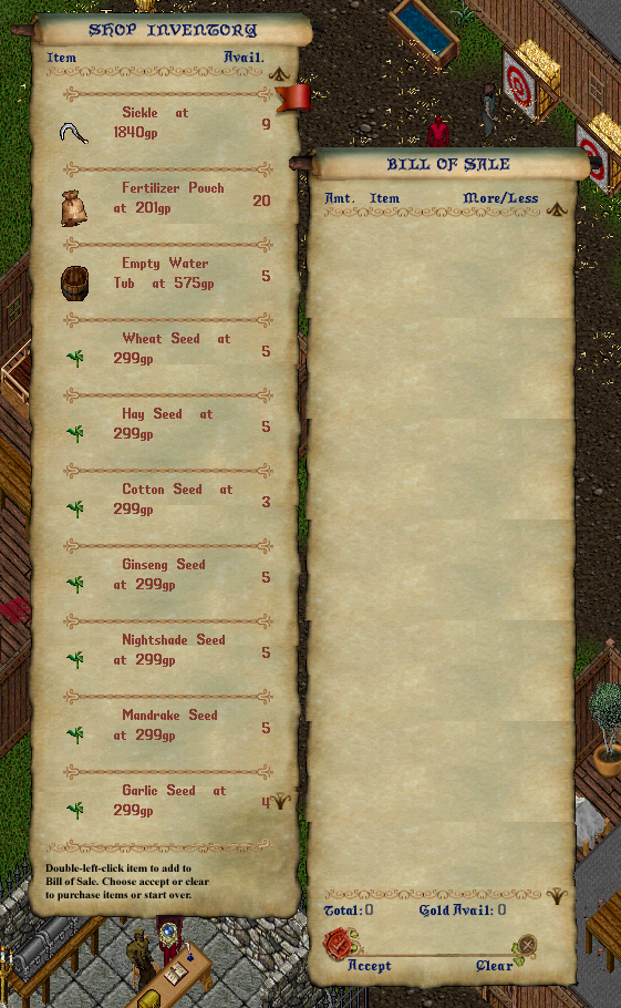 Vendor’a çift tıkladığınızda, ekebileceğiniz farklı türde tohumların listelendiği bir alış menüsü açılacaktır.