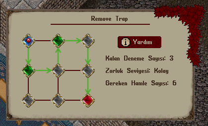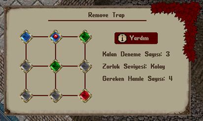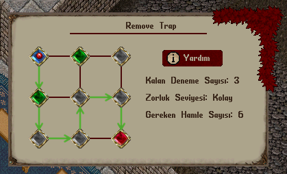 Remove Trap mini oyununda karşınıza çıkabilecek toplam 12 farklı kombinasyon bulunmaktadır. Her bir kombinasyon, mavi noktadan kırmızı noktaya ulaşmak için farklı bir yol çözümüne sahiptir. Bazı kombinasyonlar 4, bazı kombinasyonlar 6, bazıları ise 8 hamle yapmanızı gerektirmektedir.